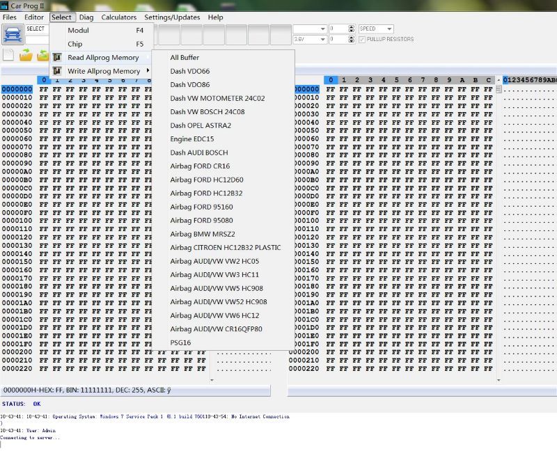 Carprog2 programmer v8.28 (2018/March) functions :