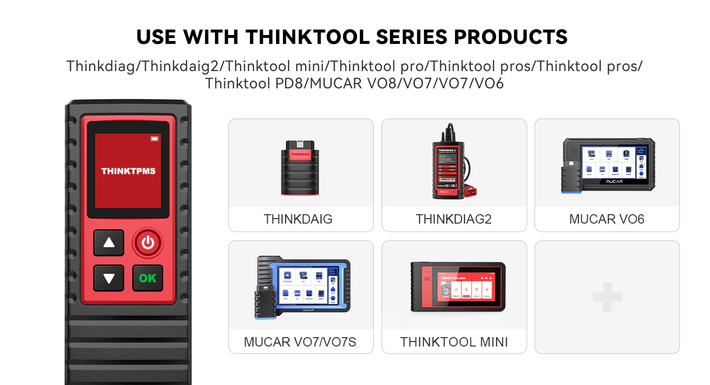 It can be connected to Thinkdiag diagnostic Tool via Bluetooth and used to easily diagnose tire faults on mobile phones. It can also be used with THINKTOOL series products .