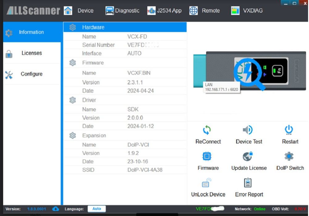 VCX-FD GM interface is OEM GM MDI2 scanner from VXDIAG,it will scan DOIP and CAN FD vehicles well.With VXDIAG Manager ,You will easy to Update firmware ,driver and License free.